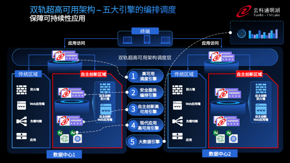 为实现双轨超高可用架构信创区和非信创区的跨域协同,实现信创区域和非信创区域的平滑过渡,MGM美高梅官网顺利获得五大引擎实现多层次的应用可持续性。